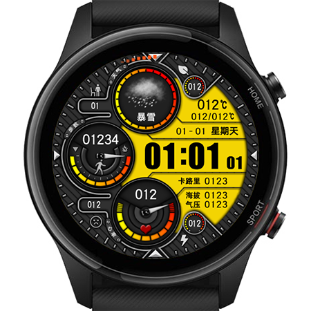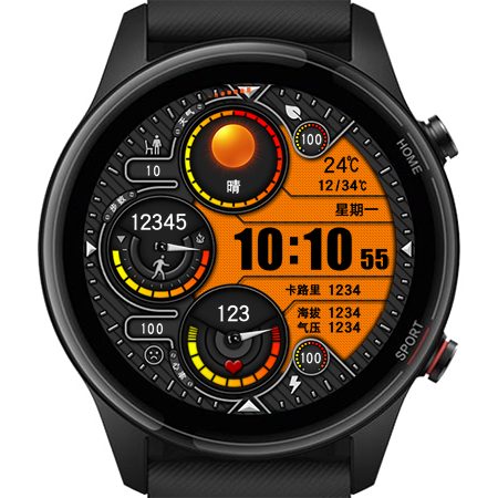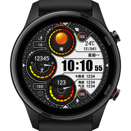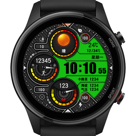 其中5个进度条分别是能量、站立目标达成率、计步目标达成率、心率、电量。