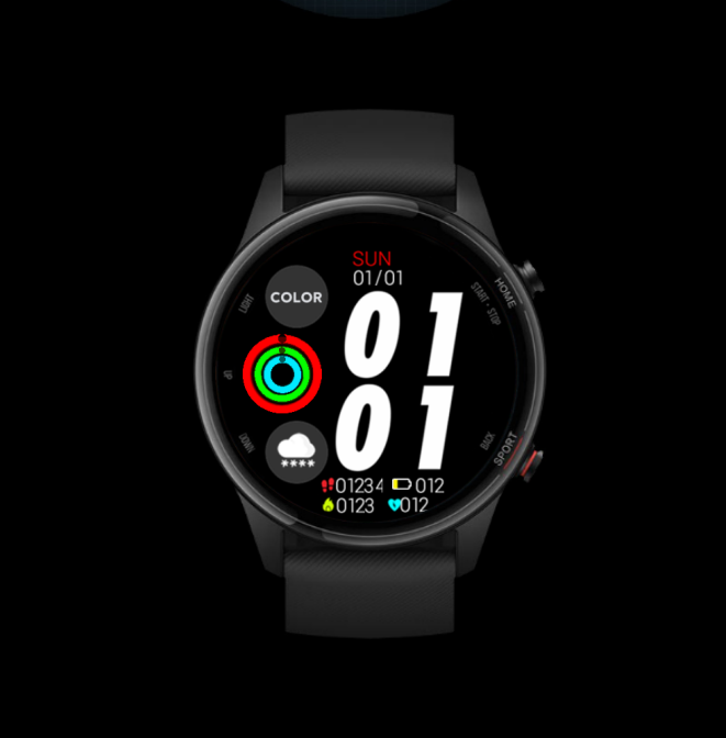 数据项齐全,大数字显示,看时间方便,配有进度条,最外圈心率,接着步数,接着卡路里。有具体月份日期!