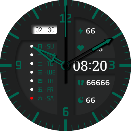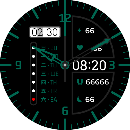 多功能,包含日期,星期,电量,心率,步数,睡眠。
